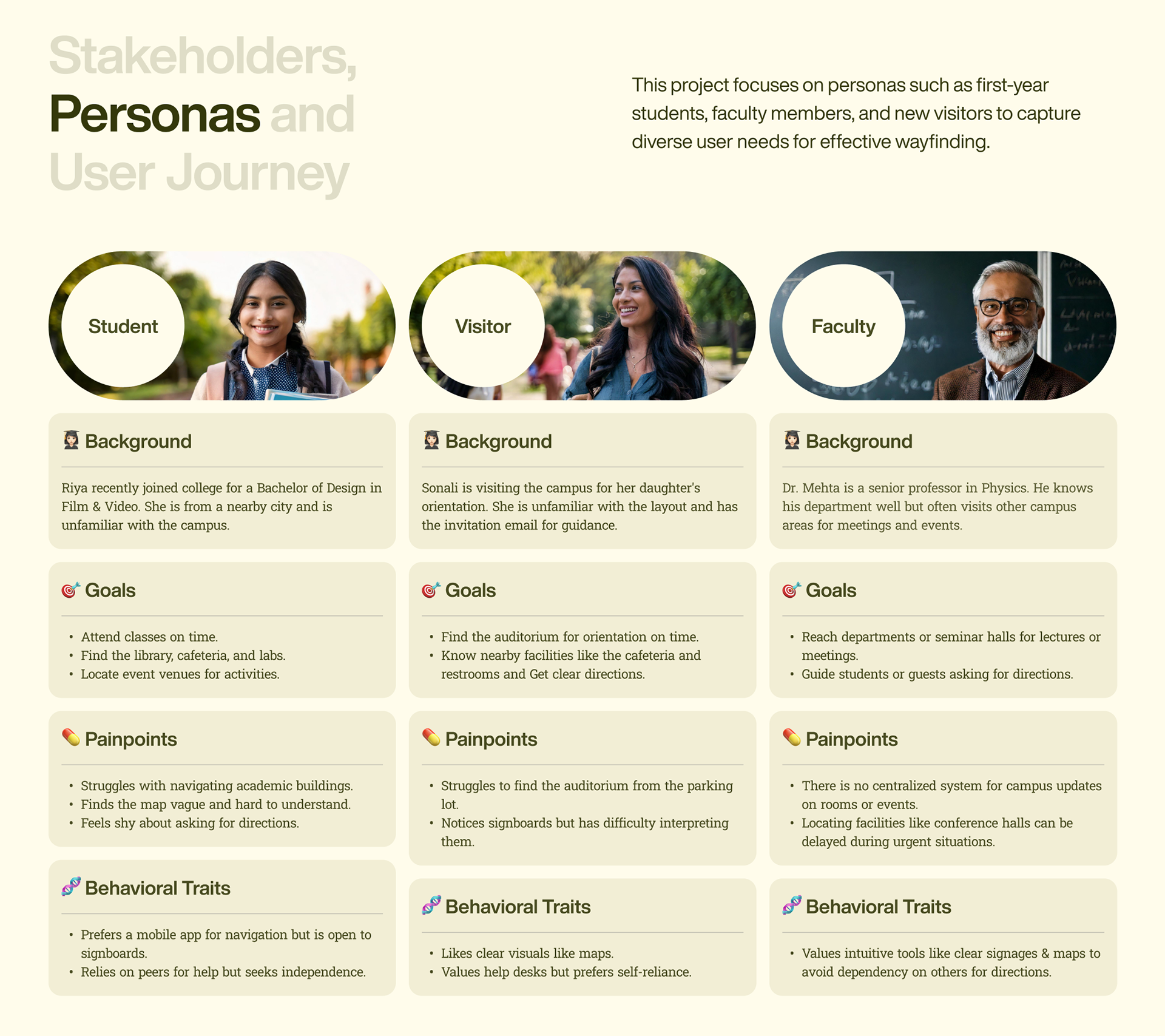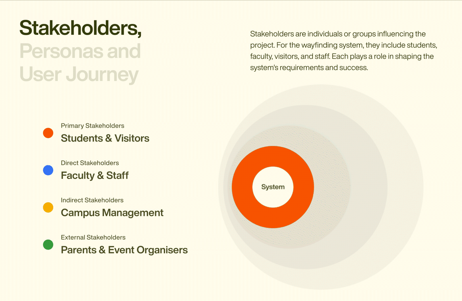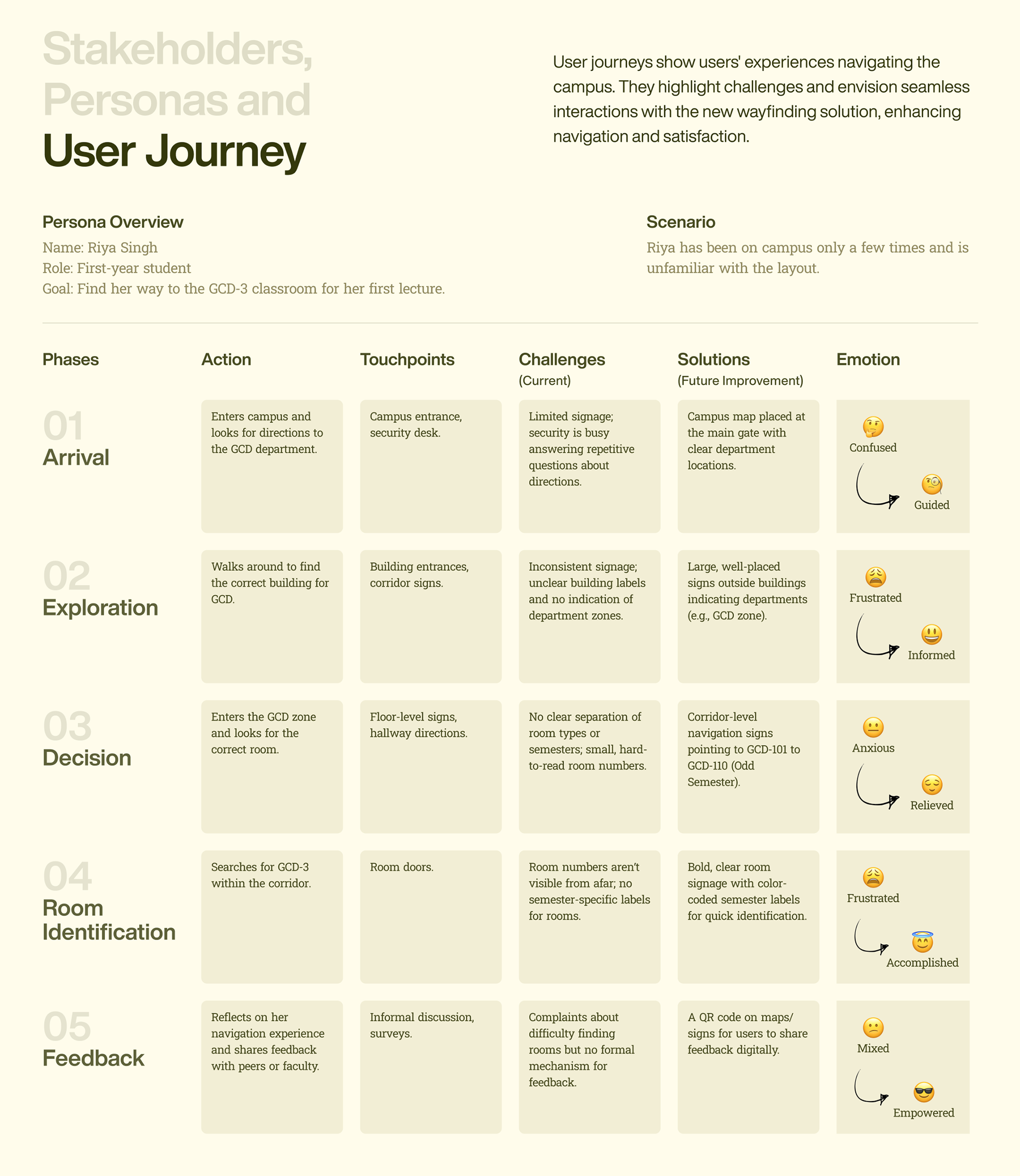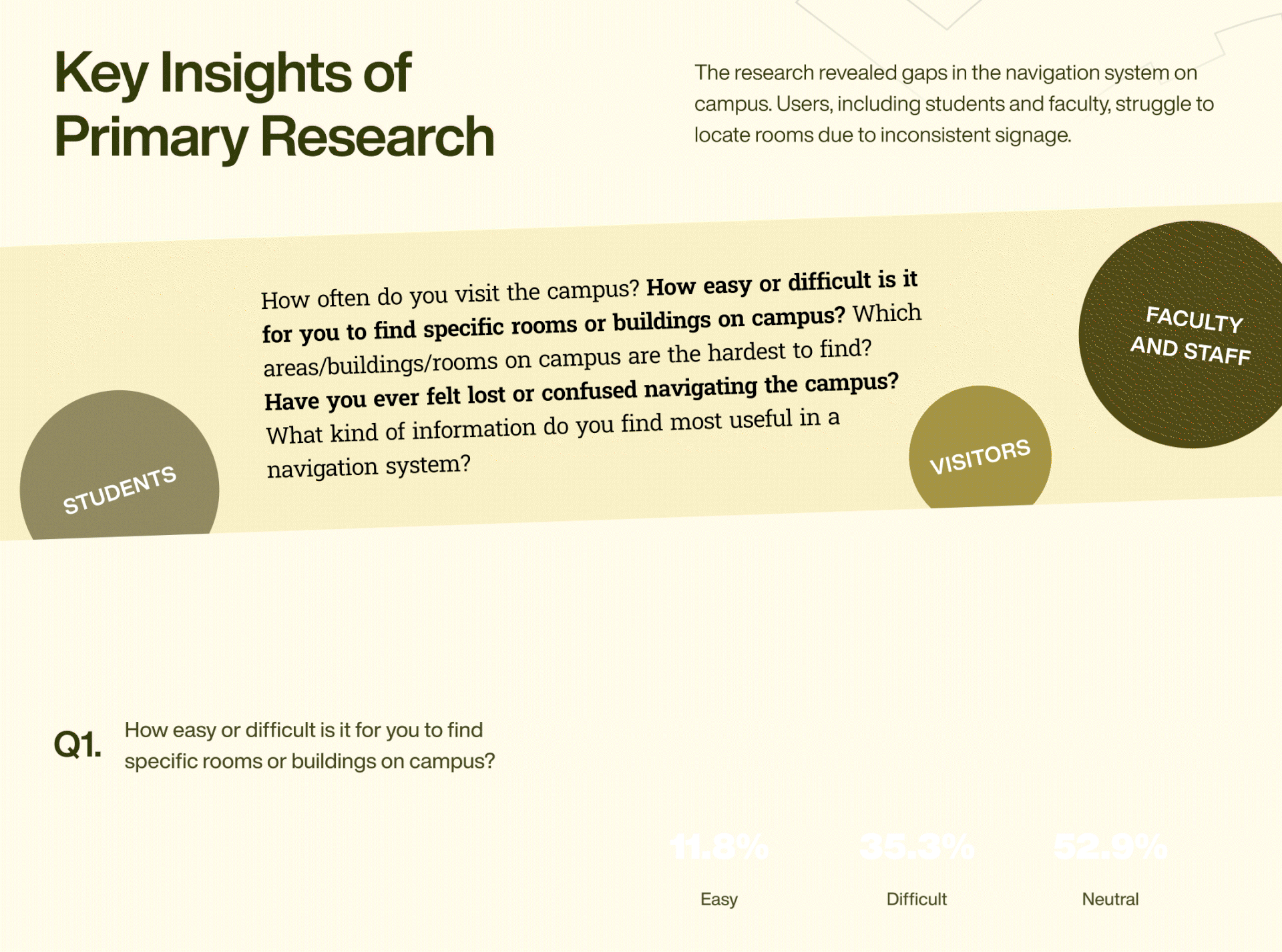 This project focuses on designing an intuitive wayfinding system for our college campus to address navigation challenges faced by students, faculty, and visitors. By analyzing the current pain points and incorporating user-centric solutions such as clear signage, campus maps, and directional indicators, the system aims to enhance navigation efficiency and improve the overall user experience.