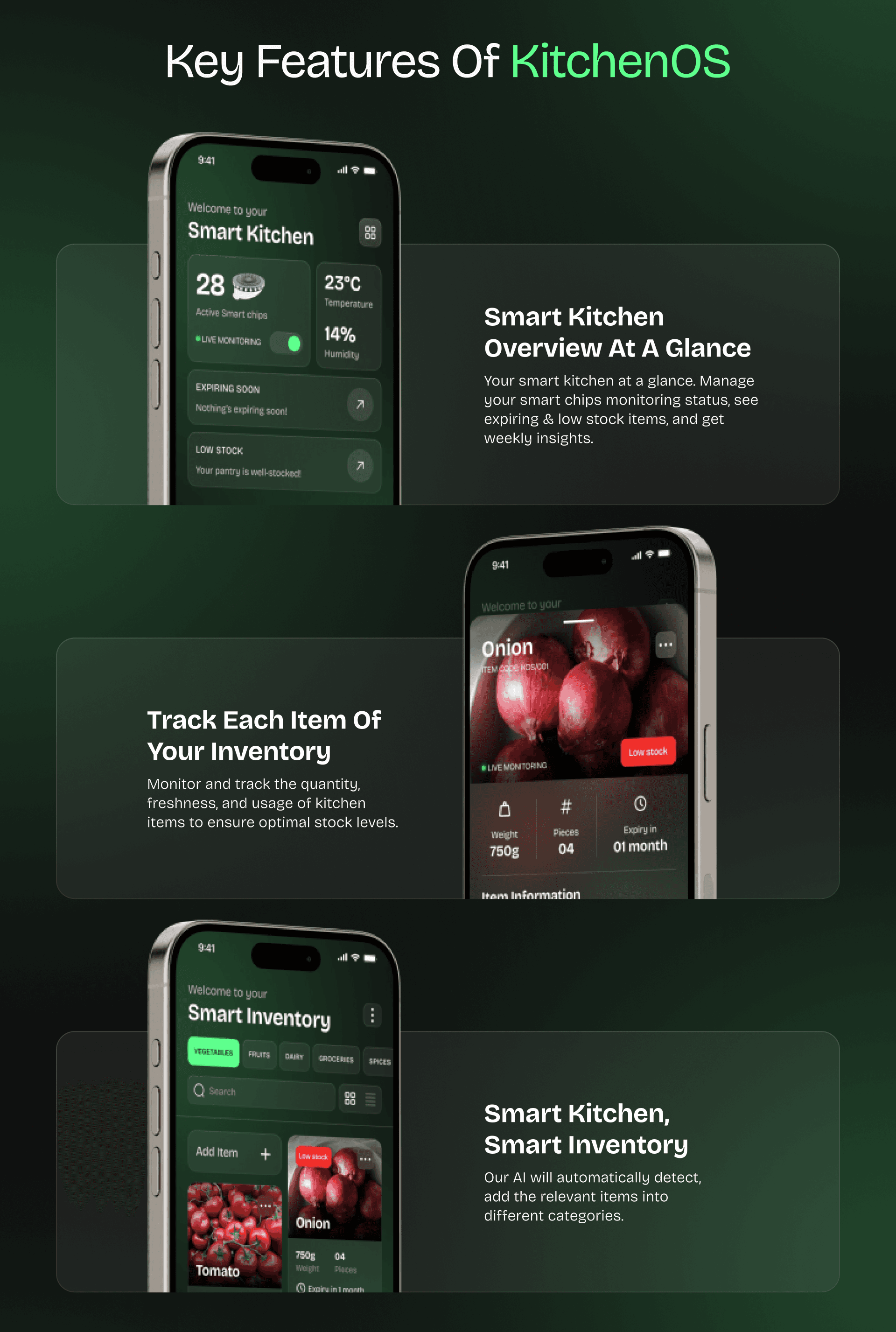 A technology-driven solution that reimagines how we manage our kitchens — focusing on efficiency, waste reduction, and a seamless, intuitive experience.