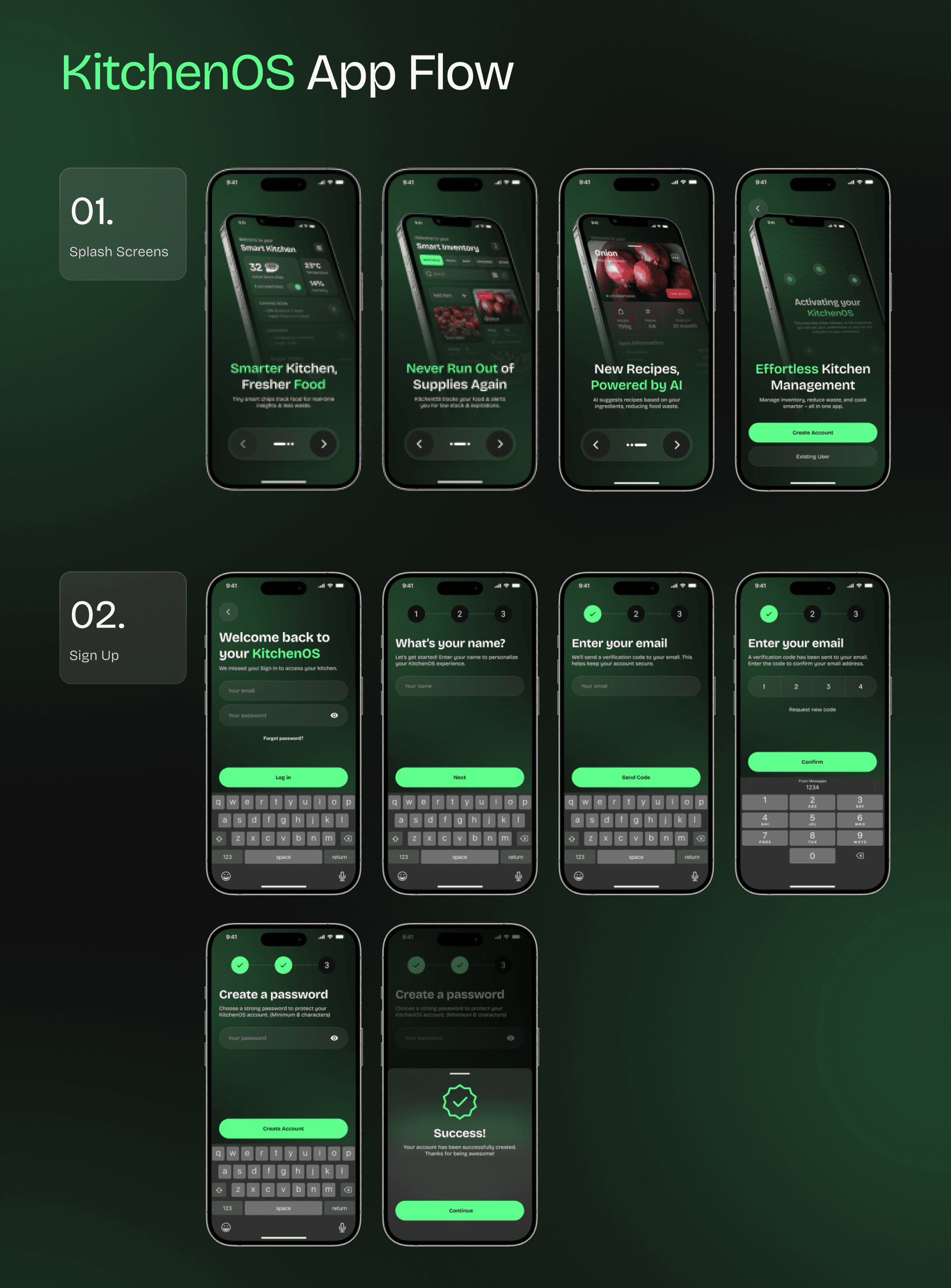 KitchenOS transforms the conventional kitchen into a connected, intelligent space. By leveraging smart technology and an elegant user interface, the app helps users monitor, control, and optimize their kitchen routines — making home cooking simpler, safer, and more sustainable.