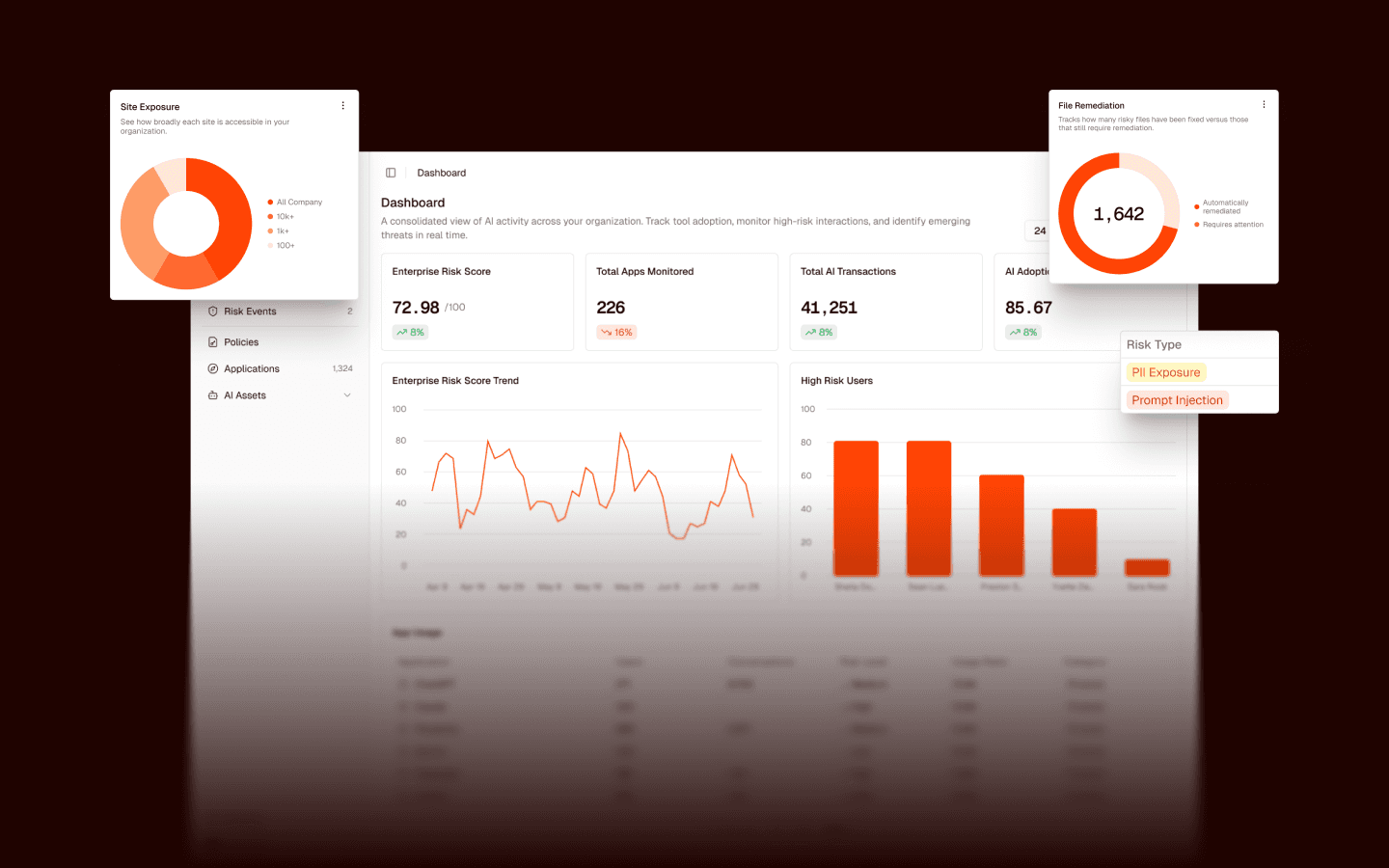 Sentinel gives organizations a real-time view into how AI tools are being used across the enterprise, from approved applications to hidden shadow AI.